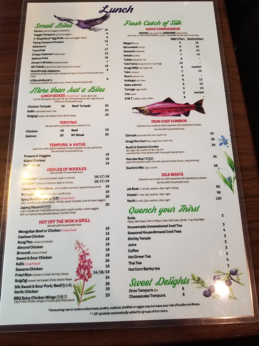 If you're looking to enjoy a meal that's both delicious and memorable, check out the Silk Restaurant & Sushi Bar Menu. Located at 500 E Benson Blvd #114 in Anchorage, AK, this spot has quickly become a favorite for those craving fresh sushi and bold Asian flavors. From vibrant sushi rolls to expertly prepared entrees, each dish is made with quality ingredients and served with a touch of creativity.